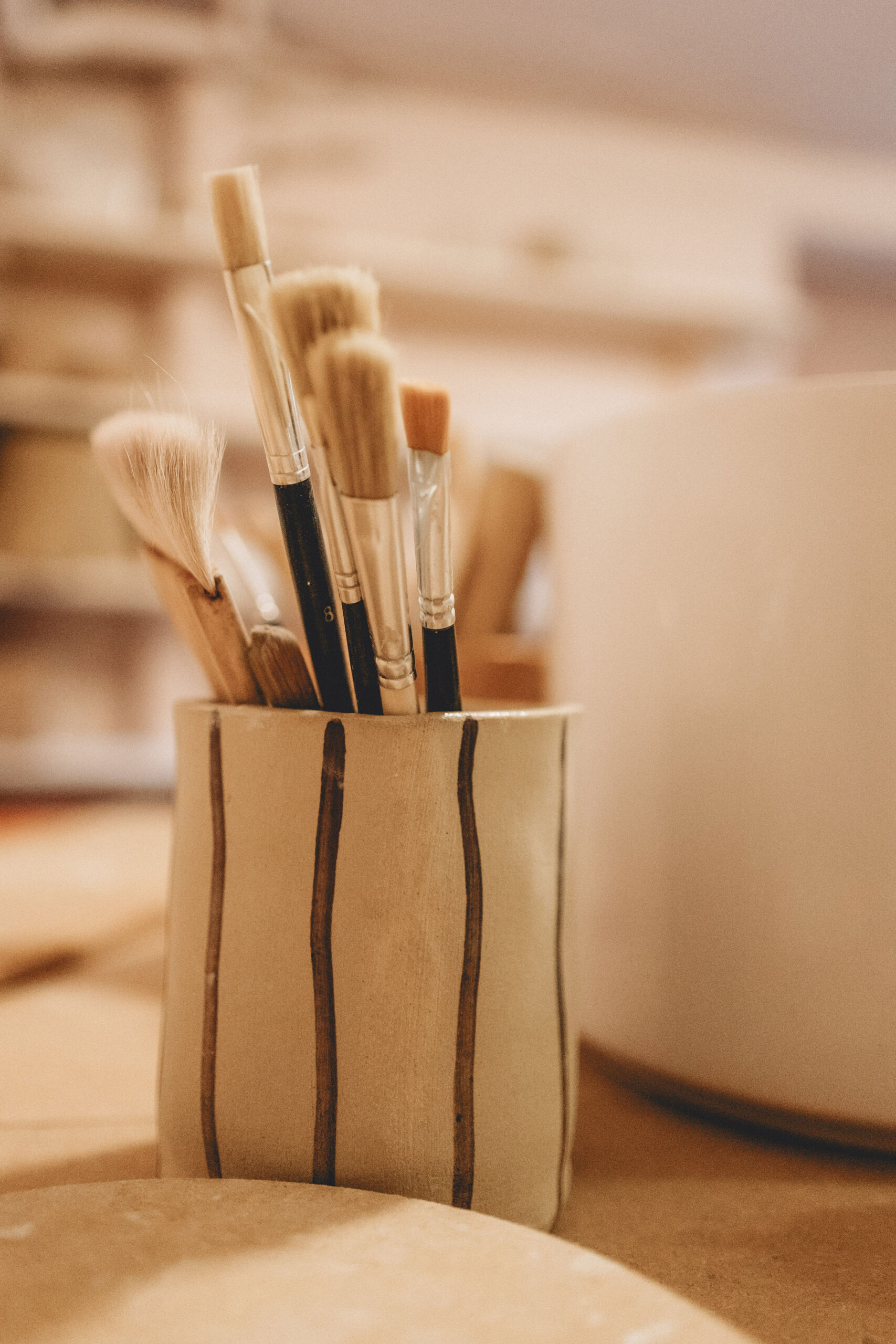 Vi lär oss grundteknikerna: tumma, ringla, kavla och skulptera. Ibland får vi tillfälle att dreja tillsammans också.